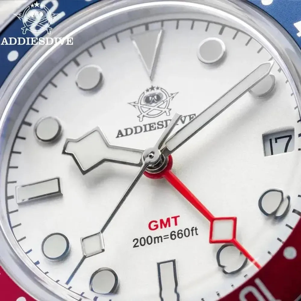 The ADDIESDIVE 39mm GMT Quartz Diver Watch combines Swiss-powered accuracy with a compact, travel-ready design. Powered by the Swiss Ronda 515-24H GMT quartz movement, it supports reliable dual-time tracking for everyday use and international travel. The brushed 316L stainless steel case, bubble mineral crystal with Swiss AR coating, and 120-click unidirectional bezel provide durability and clarity, while BGW9 luminous hands and markers ensure strong visibility in low light. With 200M water resistance, a screw-down crown, and the option of a stainless steel bracelet or nylon strap, this GMT diver offers versatility for adventure and daily wear.