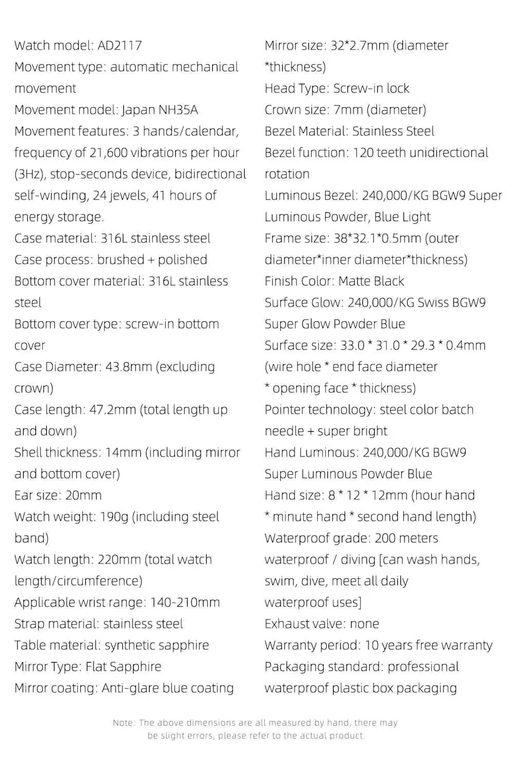 The ADDIESDIVE 43.8mm Automatic Diver Watch delivers rugged durability and refined detail with its distinctive cushion-shaped case and 3D textured dial. Powered by the Japan Seiko NH35A automatic movement, it offers smooth mechanical performance, a 41-hour reserve, and dependable accuracy for both land and underwater use.
