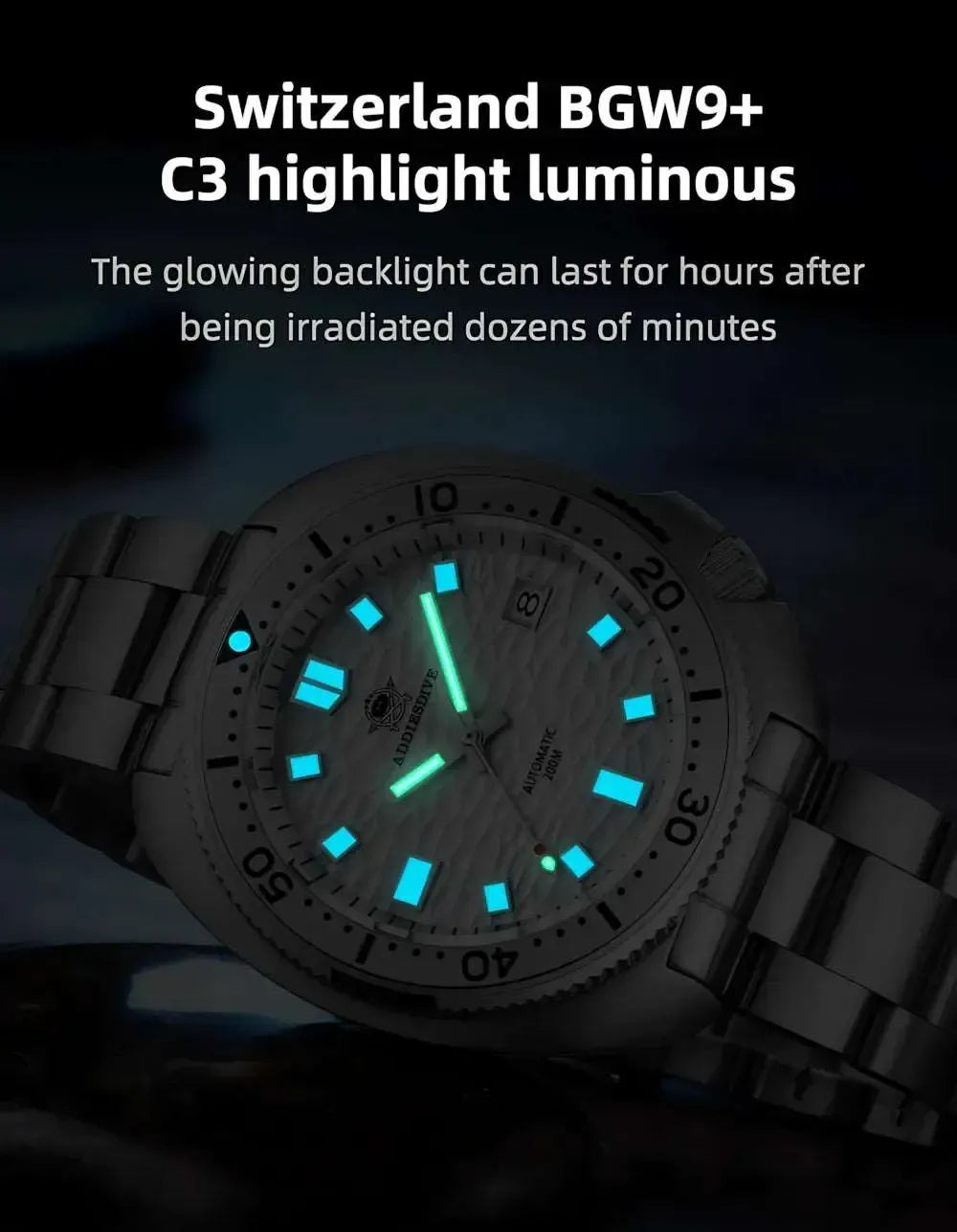 ADDIESDIVE Turtle-Style 43.8mm Automatic Diver Watch – NH35A, 3D Dial, 200M