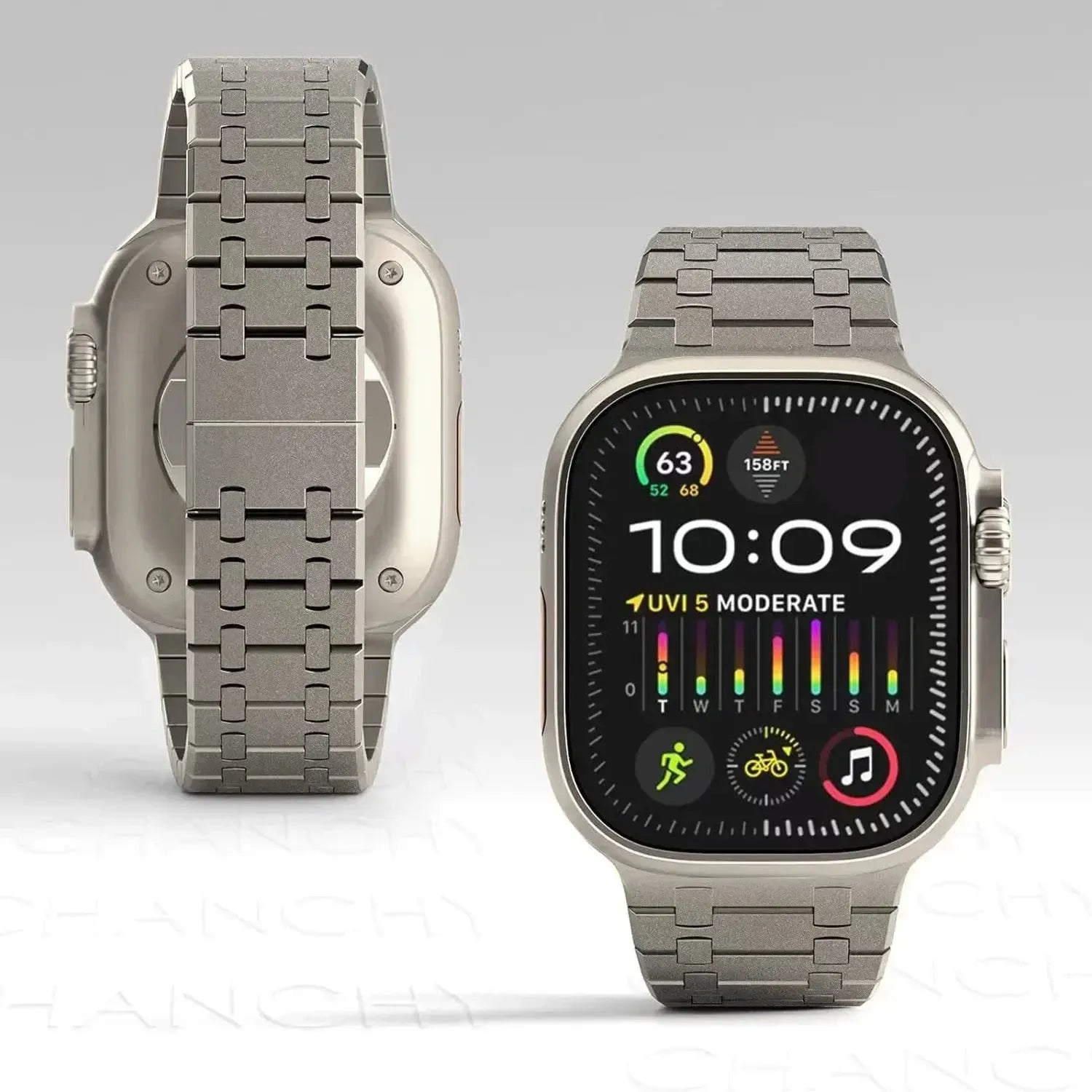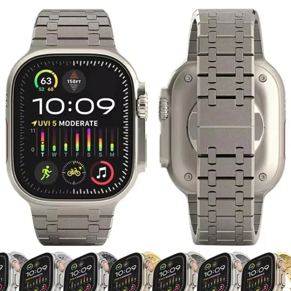A versatile stainless steel bracelet with multiple finishes, tailored to elevate your Apple Watch for any occasion—sport, business, or daily wear.