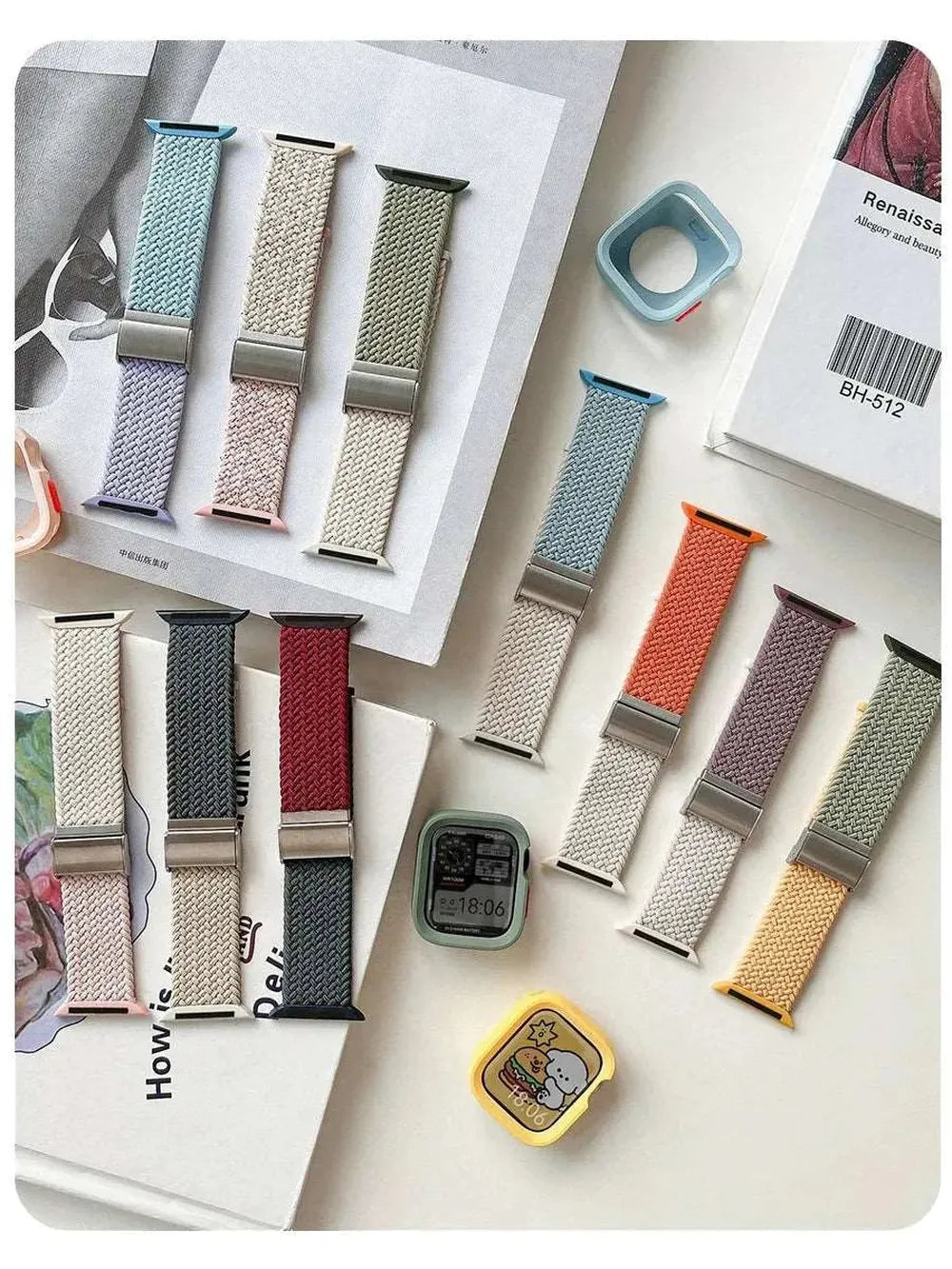 Candy Silicone Case with Braided Nylon Strap Compatible with Apple Watch 38–49mm