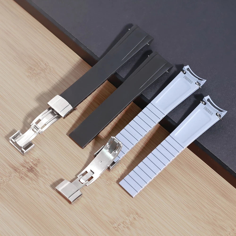 Curved-End FKM Rubber Watch Strap – 20mm, Folding Clasp, Cut-to-Fit Design
