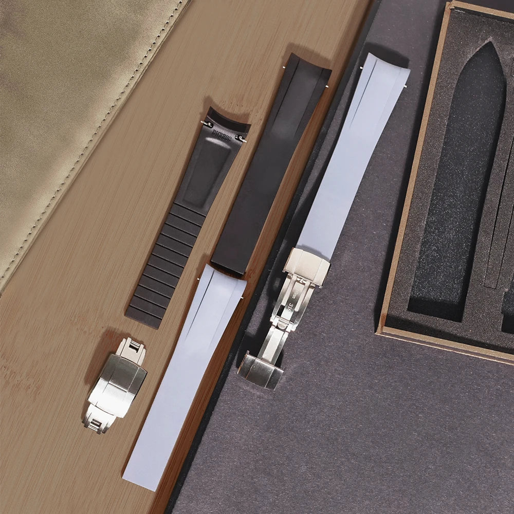 This curved-end FKM rubber strap delivers a secure, comfortable, and performance-focused upgrade for sport and everyday watches. Made from premium fluoro rubber, it provides excellent flexibility, waterproof durability, and resistance to sweat, heat, and UV exposure. The integrated folding clasp is crafted from 316L stainless steel for a reliable and corrosion-resistant lock.