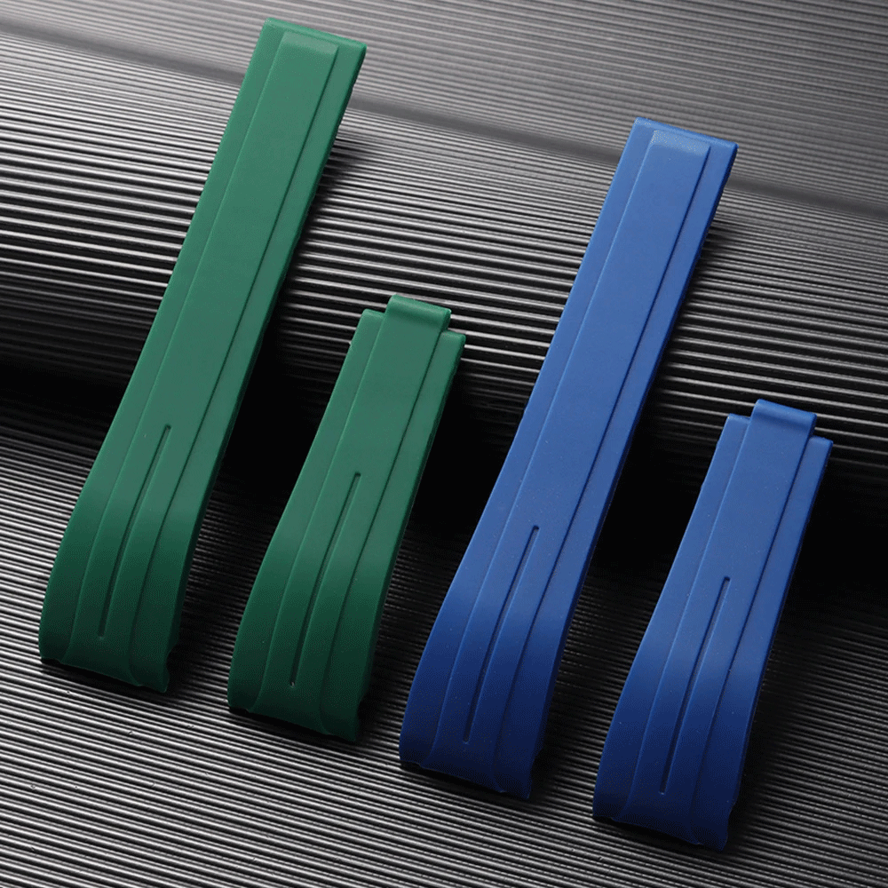 This curved-end rubber watch strap offers a comfortable, waterproof design ideal for daily wear, sports, and outdoor activities. Made from soft yet durable silicone rubber, it provides a secure fit with a smooth, streamlined look. The strap is compatible with watches using 20mm, 21mm, or 22mm lug widths, and supports 9×16mm folding clasps for a clean and modern locking mechanism.