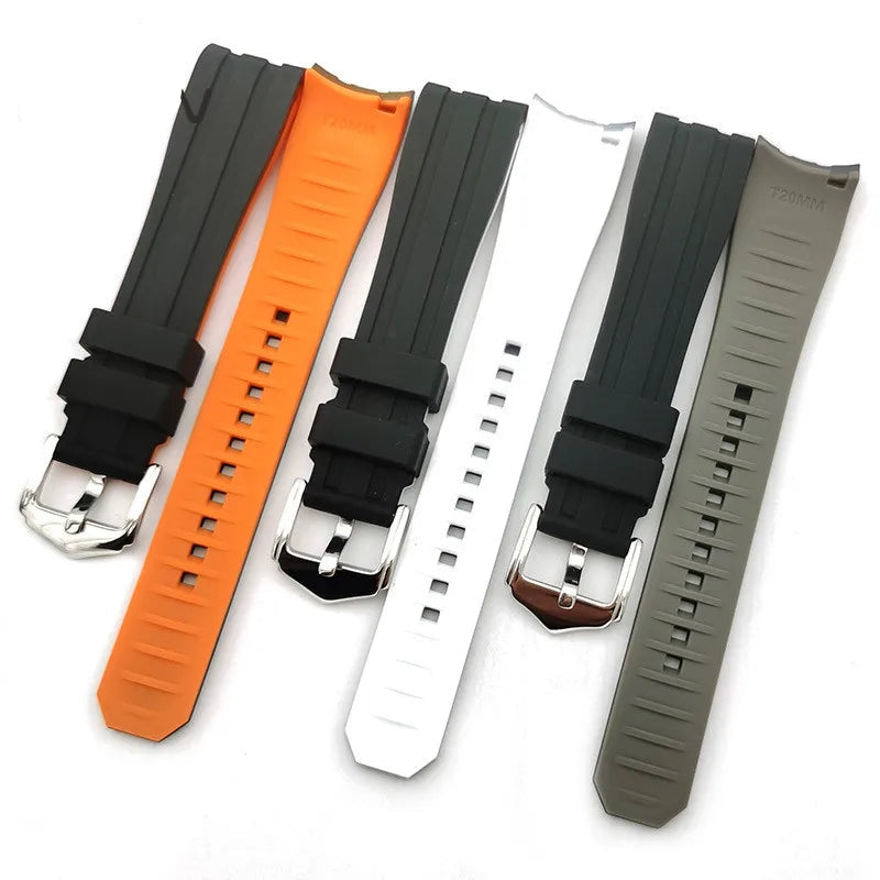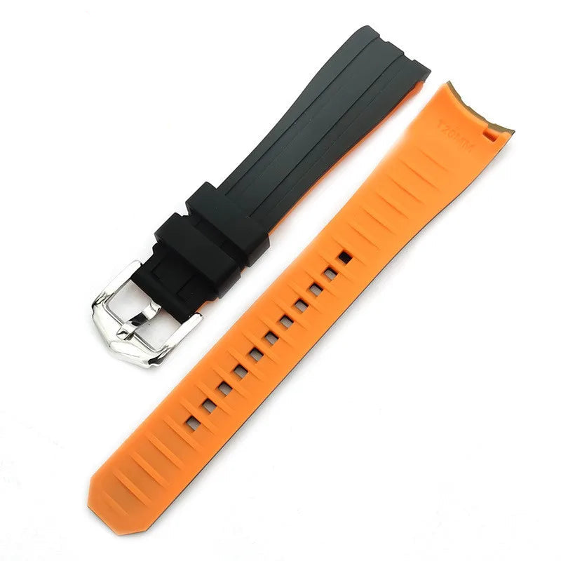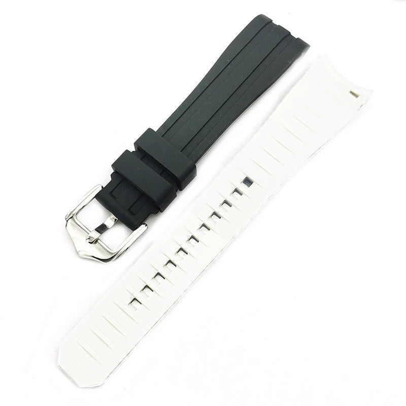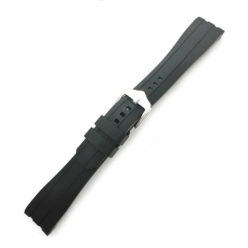 Curved-End Rubber Watch Strap with Stainless Steel Buckle – 18mm / 20mm / 22mm