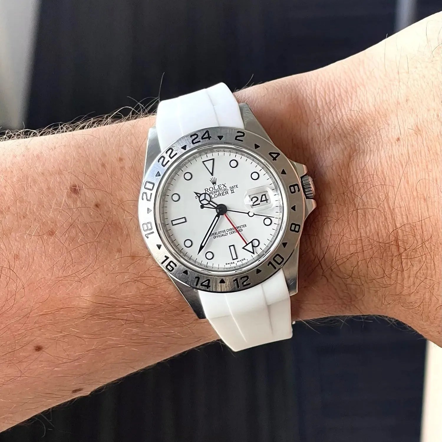A refined silicone strap offering a perfect balance of flexibility, durability, and integrated aesthetics—ideal for curved-lug sport or classic watches seeking a seamless, modern fit.