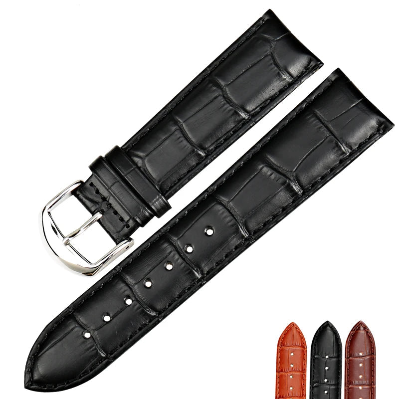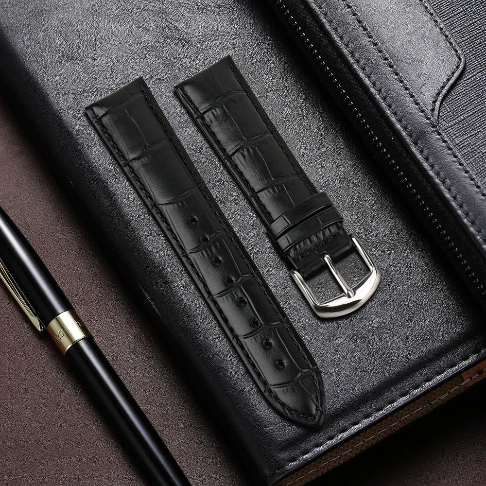This genuine leather watch strap is designed for classic and dress-style timepieces, featuring a refined croc-style texture and a traditional buckle clasp for a secure, timeless fit.