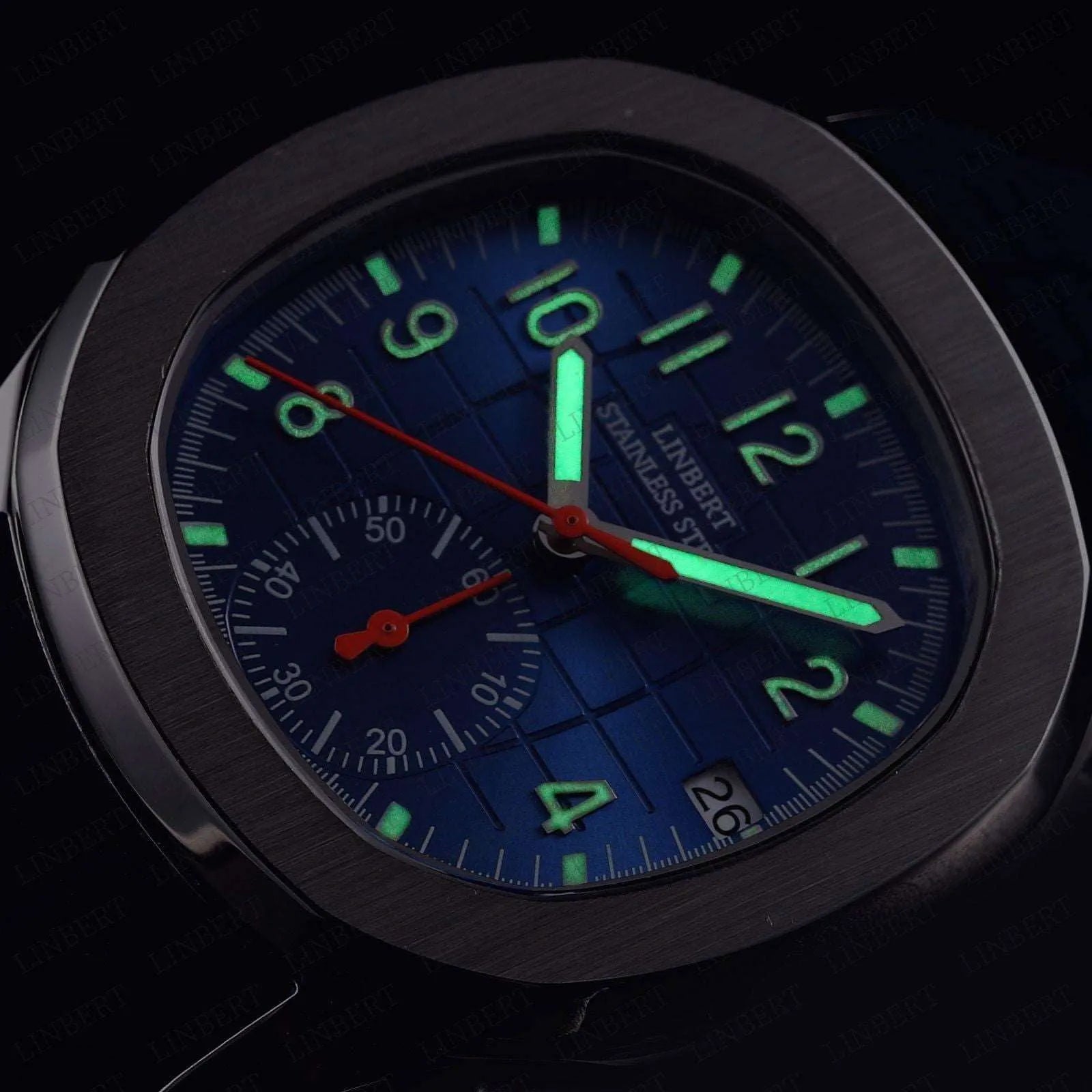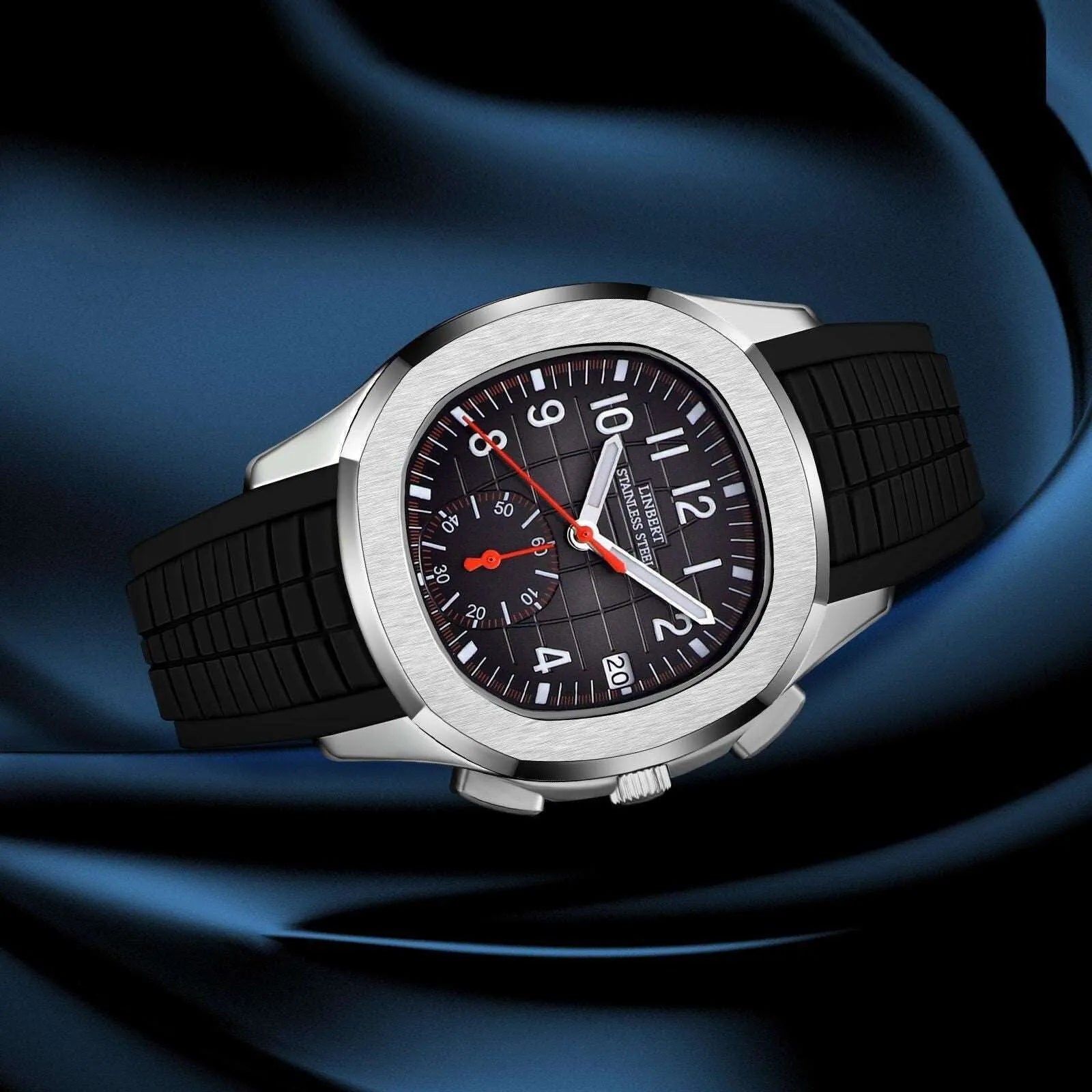 This 40mm quartz sport watch from Linbert features a clean rounded-octagonal case paired with a textured rubber strap, offering a modern and versatile look suited for both daily wear and business settings. Crafted from 316L stainless steel and protected by a sapphire crystal, it delivers durable clarity and reliable performance for everyday use. The sub-dial day display at 3 o’clock adds a practical touch to its balanced design, while luminous hands support visibility in low-light environments. Lightweight, comfortable, and refined, this stainless-steel and rubber timepiece blends contemporary styling with dependable quartz accuracy for those who value simplicity and modern character.