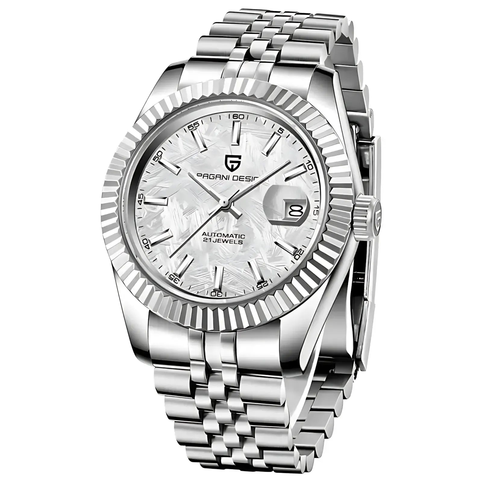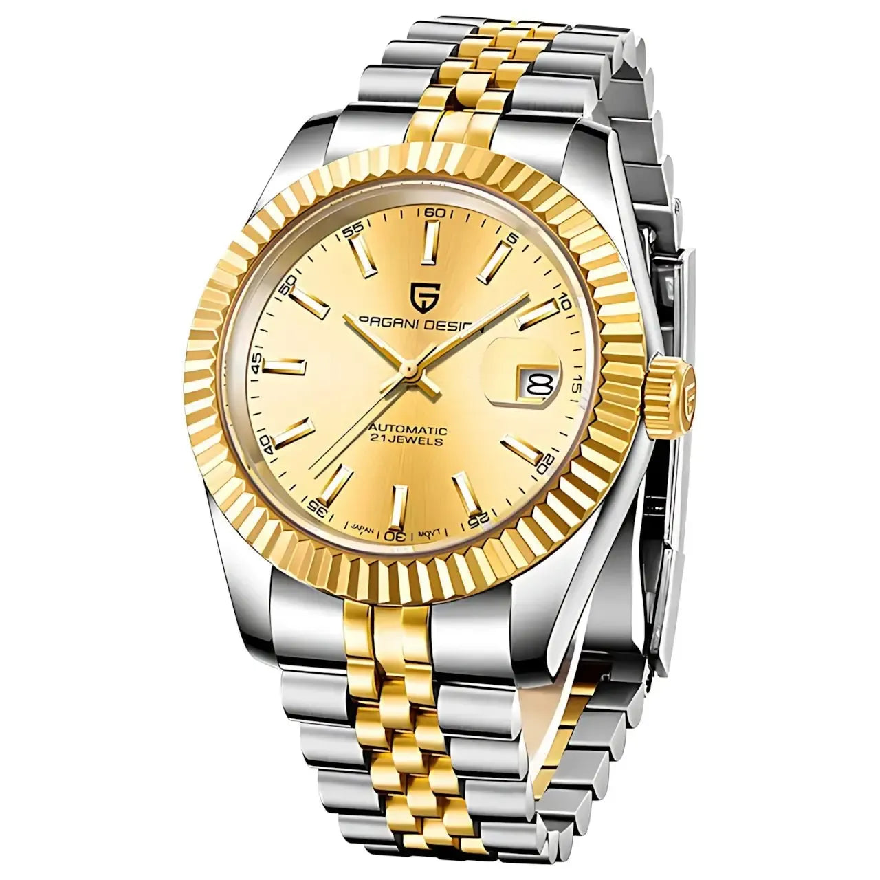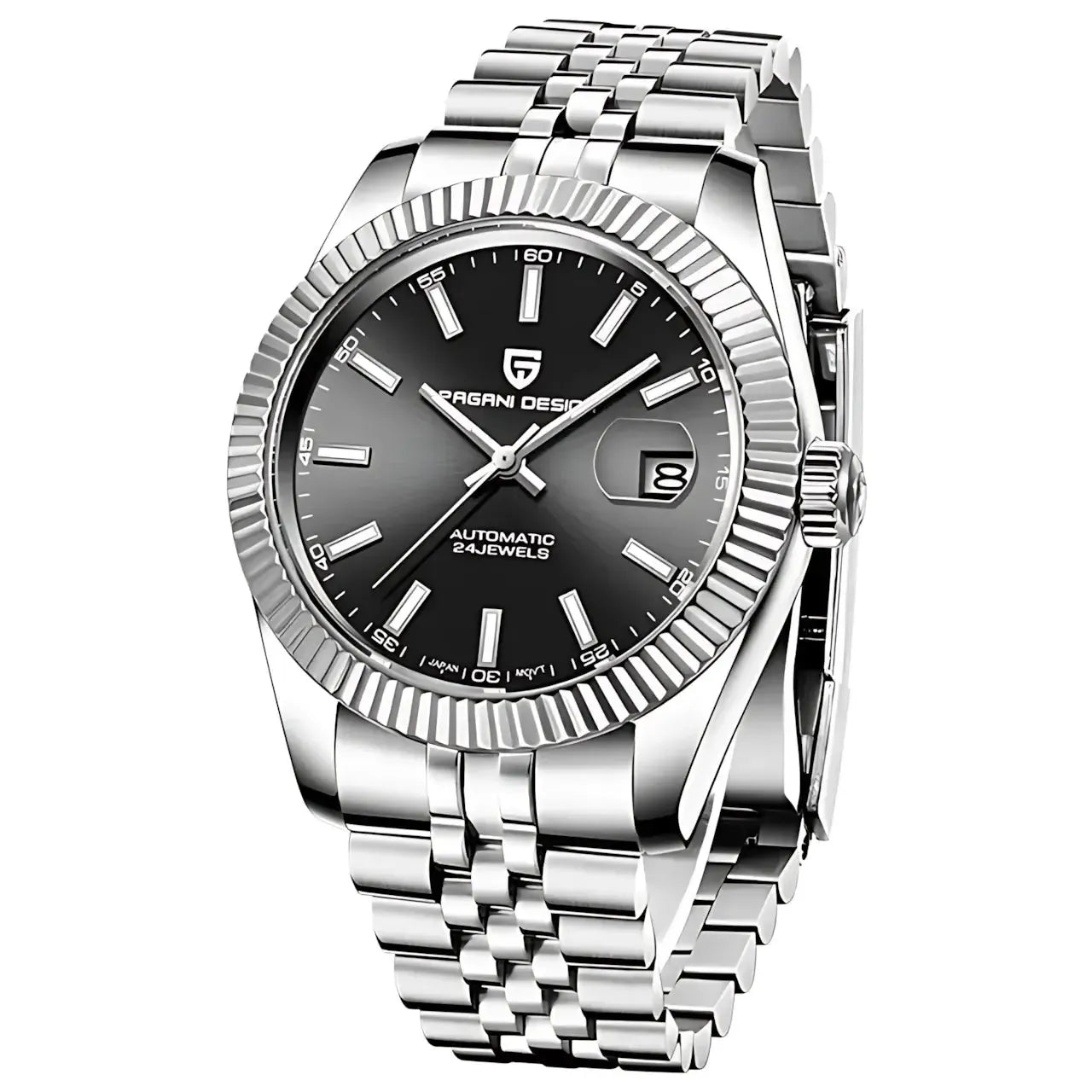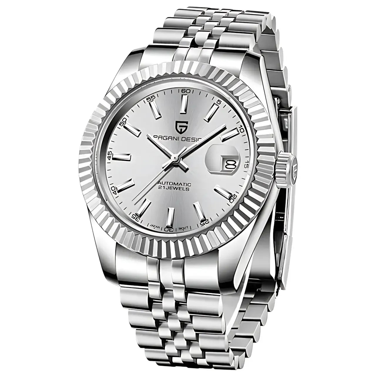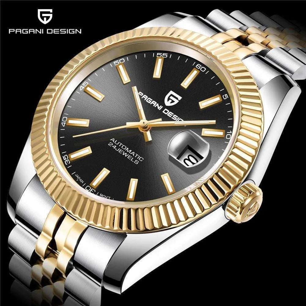 This 42mm automatic watch from Pagani Design offers a blend of classic aesthetics and durable everyday performance. Built with a brushed 316L stainless-steel case and a refined multi-link bracelet, it delivers a versatile look suitable for business, casual, or daily wear. The Japan NH35 automatic movement provides reliable self-winding performance with manual winding support, while the sapphire crystal with AR coating ensures long-lasting clarity and scratch resistance. A functional date display, luminous hands, and a secure folding clasp enhance practicality, and with 100M water resistance and a screw-down crown, the watch is ready for everyday conditions. Designed for comfort, durability, and modern style, this timepiece is an excellent choice for both new and experienced automatic watch owners.