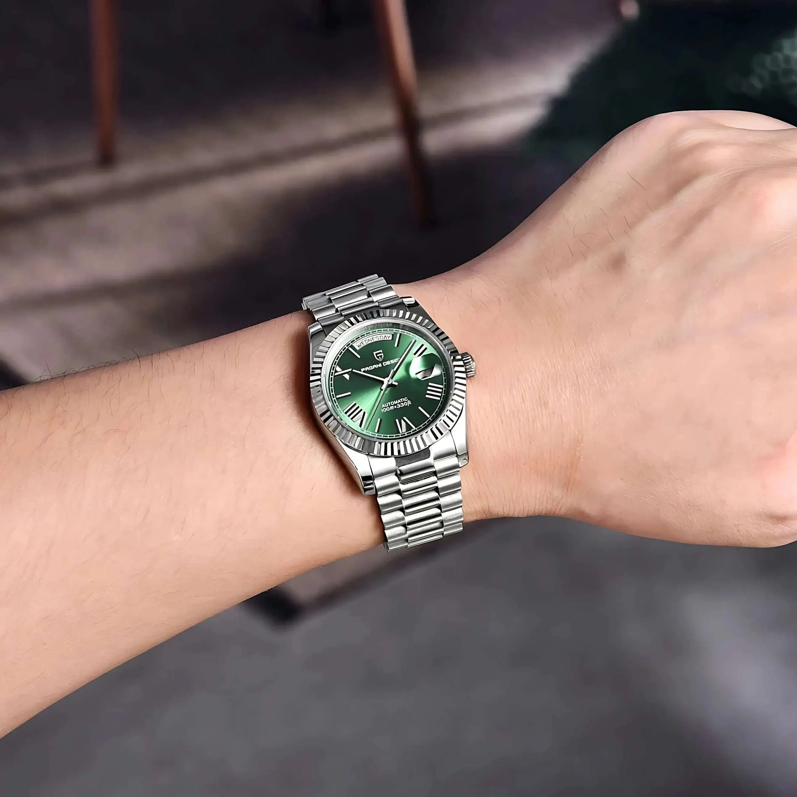 The Pagani Design 40mm Automatic Calendar Watch combines classic proportions with modern everyday performance. Built from 316L stainless steel, it features an AR-coated sapphire crystal for enhanced clarity and durability. Powered by the NH36A automatic movement, it offers smooth mechanical operation, a 40-hour power reserve, and a dual calendar display for practical daily use.