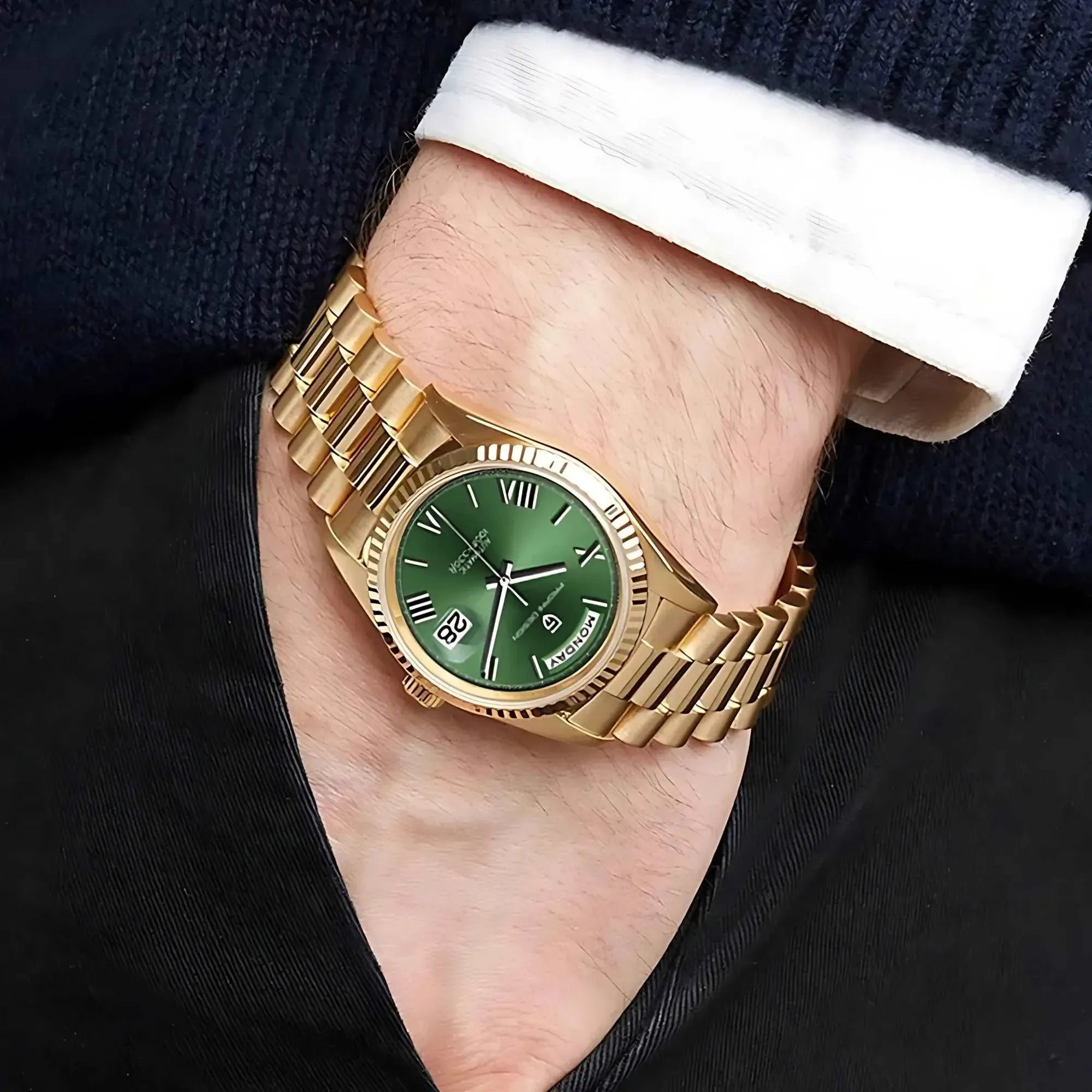 With 100-meter water resistance, a secure folding clasp, and a shock-resistant construction, this timepiece is engineered for dependable wear—whether at work, on the go, or during weekend activities.
