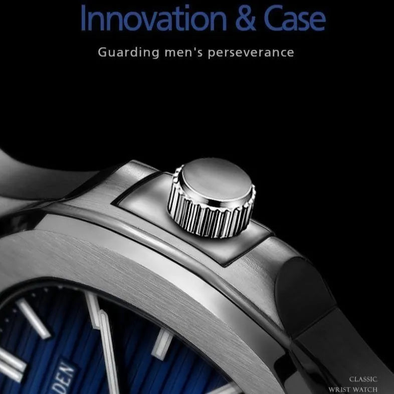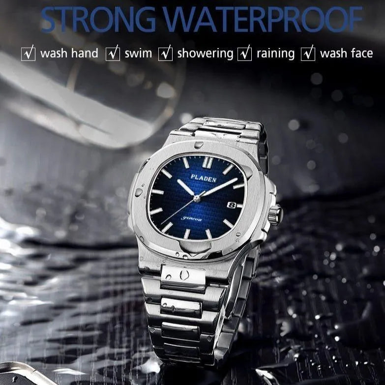 This 44mm quartz timepiece from Pladen features a bold rounded octagonal case paired with an integrated stainless-steel bracelet, offering a modern and confident presence on the wrist. Designed for everyday practicality, it is powered by a reliable Japanese quartz movement that ensures accurate timekeeping with minimal maintenance. The Hardlex mineral crystal provides scratch-resistant clarity, while luminous hands improve visibility in low-light conditions. A date display at 3 o’clock adds daily usability, and the folding clasp with safety lock provides a secure and comfortable fit. With 3ATM water resistance and durable stainless-steel construction, this watch delivers dependable performance for both casual and professional wear. A versatile integrated-bracelet design that balances presence, comfort, and straightforward reliability.