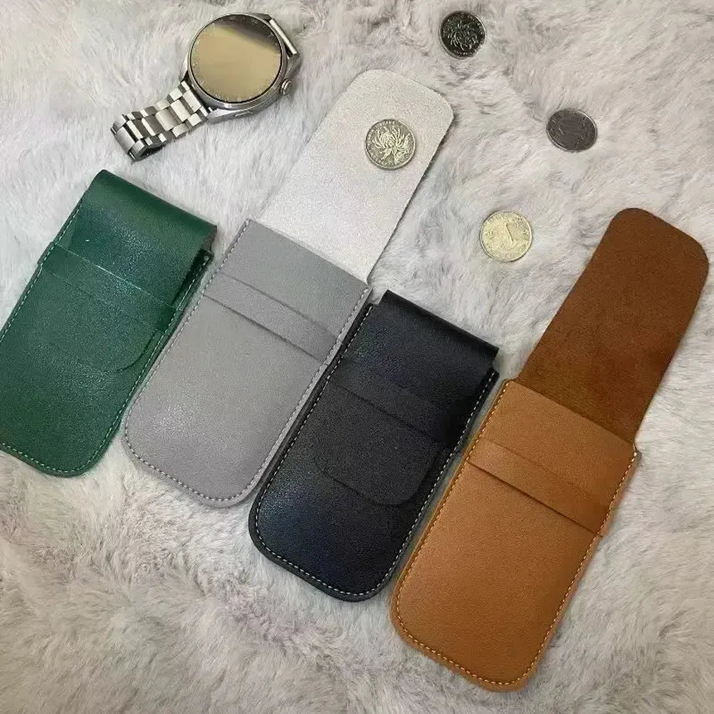 PU Leather Single Slot Travel Watch Pouch with Loose-Edge Stitching