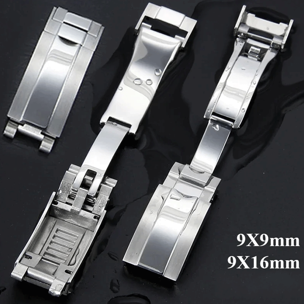 Upgrade your watch strap with a durable stainless steel glidelock-style adjustable clasp, designed for smooth micro-adjustment and a secure folding mechanism. Available in two sizes, Buckle A (9×9mm) and Buckle B (9×16mm), this third-party replacement clasp fits a wide range of watch straps using these connector dimensions.