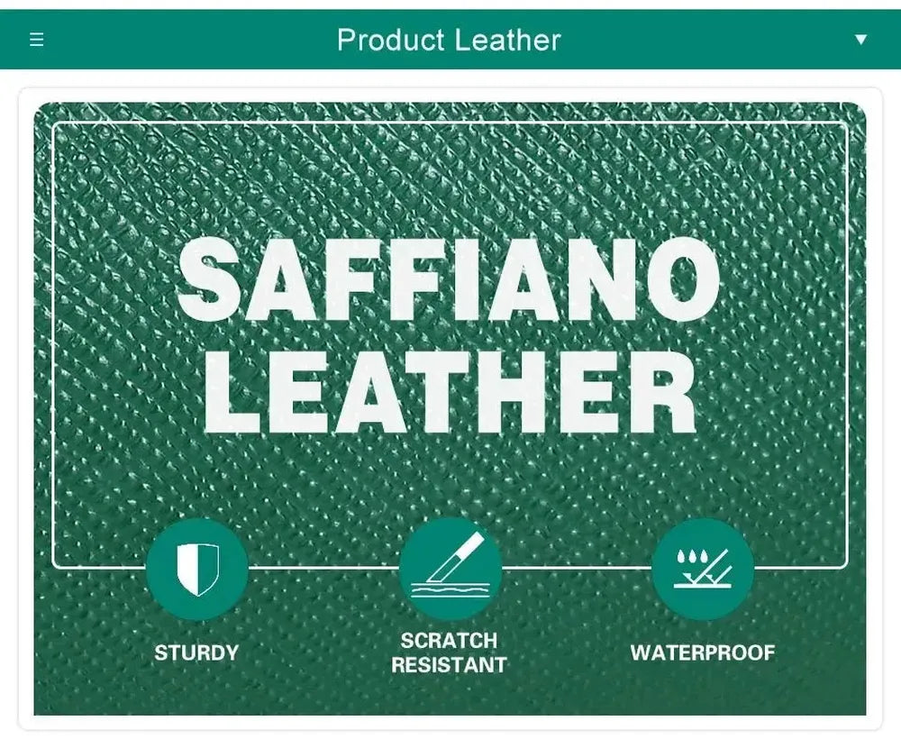 Exterior Material: Genuine Cowhide Saffiano Leather